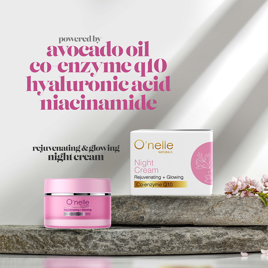 O’nelle Naturals Night Cream is the perfect evening companion to O’nelle’s Day Cream, powered by Co-Enzyme Q10 from Avocado Oil and rich botanical extracts, it works overnight to deeply hydrate and visibly plump away fine lines for glowing, dewy skin by morning.